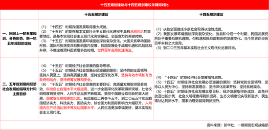 “十五五”规划建议明确了这一时期在基本实现社会主义现代化进程中具有“承前启后”的重要地位。“十五五”规划建议结合“到二〇三五年实现我国经济实力、科技实力、国防实力、综合国力和国际影响力大幅跃升,人均国内生产总值达到中等发达国家水平,人民生活更加幸福美好,基本实现社会主义现代化”的远景目标,提出“十五五”时期“经济增长保持在合理区间,全要素生产率稳步提升”的阶段性目标。由此可见,“十五五”规划建议对经济增长的表述比“十四五”规划建议更强,强化了市场对于明年GDP增速目标设定在5%左右的预期。考虑到“十五五”时期地缘政治局势更加复杂多变,扩内需重要性提升。因此,“十五五”规划建议继续强调扩大内需是战略基点,提出了“居民消费率明显提高、内需拉动经济增长主动力作用持续增强”的阶段性目标,供给与需求再平衡的政策导向愈发明显。与此同时,“十五五”规划建议强调“科技自立自强水平大幅提高”、“国家安全屏障更加巩固”等目标,体现出在“世界百年变局加速演进”背景下,我国发展将更加重视科技与安全。从任务的顺序看,相比“十四五”规划建议,“十五五”规划建议将建设现代化产业体系作为第一任务,同时对外开放、改善民生顺序提前。