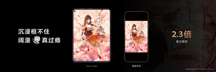 阔感漫画,将爽感拉满:作为“为内容而生”的大阔折,Pura X Max的内屏采用了独特的比例,显示面积是传统直板机的2.3倍。这一硬件特性与哔哩哔哩漫画的阅读体验完美契合。在接近16开纸质书籍比例的大屏上,超过1000部国漫的跨页大图得以完整展开。无论是宏大的战斗场面还是细腻的情感特写,用户都能获得“满屏皆是细节”的极致视觉冲击,真正实现了“阔感”漫读。